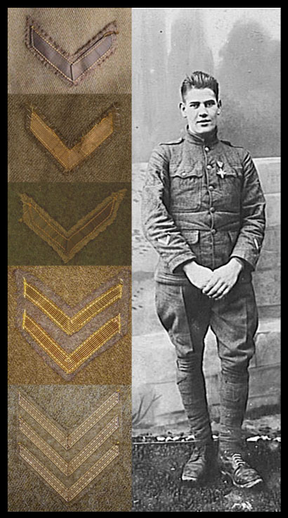 Qualification standards for the awarding of chevrons changed throughout World War I. At one point during the war, a soldier’s service started when he set foot on overseas soil. Later, it was when he boarded the ship that would take him overseas.