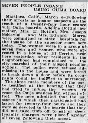 So can the Ouija board really cause people to go insane, as posited in the article from 100 years ago today?